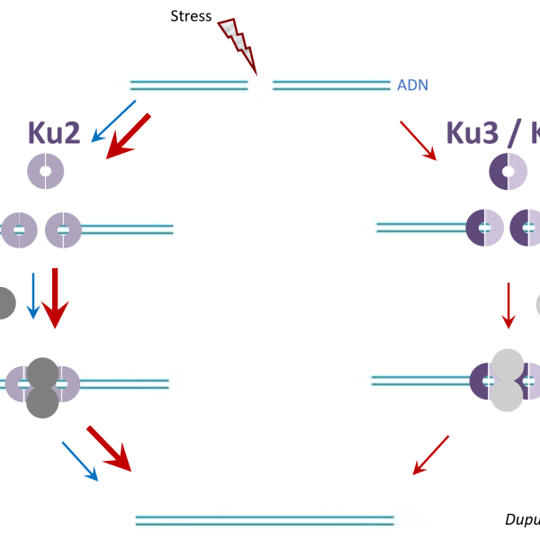 L’ADN est une macromolécule regroupant toutes les informations génétiques nécessaire à la fabrication et au développement d’un organisme vivant. Les bactéries – comme les humains – sont constamment soumises à des stress qui peuvent conduire à la formation de cassures de l’ADN, dont des cassures double-brin (CDB). Ces cassures peuvent entrainer la mort si elles ne sont pas réparées. Pour cela, les bactéries ont développé deux systèmes majeurs de réparation des CDB. L’un des deux systèmes est appelé la NHEJ (Jonction des Extrémités Non-Homologue). La NHEJ est un processus basé sur le maintien des extrémités cassées de l’ADN à proximité l’une de l’autre, suivi d’une étape de maturation des extrémités permettant de les rendre compatibles, puis de les lier. Ce processus est connu chez l’Homme depuis les années 80, mais découvert qu’en 2001 chez les bactéries. Les études menées jusqu’à présent chez les bactéries ont permis d’établir un modèle simple impliquant seulement deux protéines : Ku et LigD, contre une dizaine de protéines chez l’Homme. La plupart de ces études ont été conduites chez des espèces bactériennes possédant un seul exemplaire des protéines Ku et LigD. En revanche, certaines espèces bactériennes en possèdent plusieurs comme la bactérie Sinorhizobium meliloti. Cette bactérie est retrouvée dans le sol et est capable de vivre en parfaite harmonie dans les racines des plantes légumineuses. Elle possède 4 protéines Ku et 4 protéines LigD. Une première étude réalisée dans l’équipe suggère que plusieurs machineries de réparation de l’ADN par la NHEJ sont présentes chez cette bactérie. Nous nous demandons (i) à quoi cela peut-il servir d’avoir ce système de réparation en plusieurs exemplaires ? (ii) les partenaires des machineries peuvent-ils être interchangeable ? (iii) est-ce que les protéines impliquées dans la réparation ont une préférence pour certaines extrémités d’ADN ? Pour répondre à ces questions nous allons étudier comment les protéines travaillent ensemble et comment elles travaillent avec l’ADN.